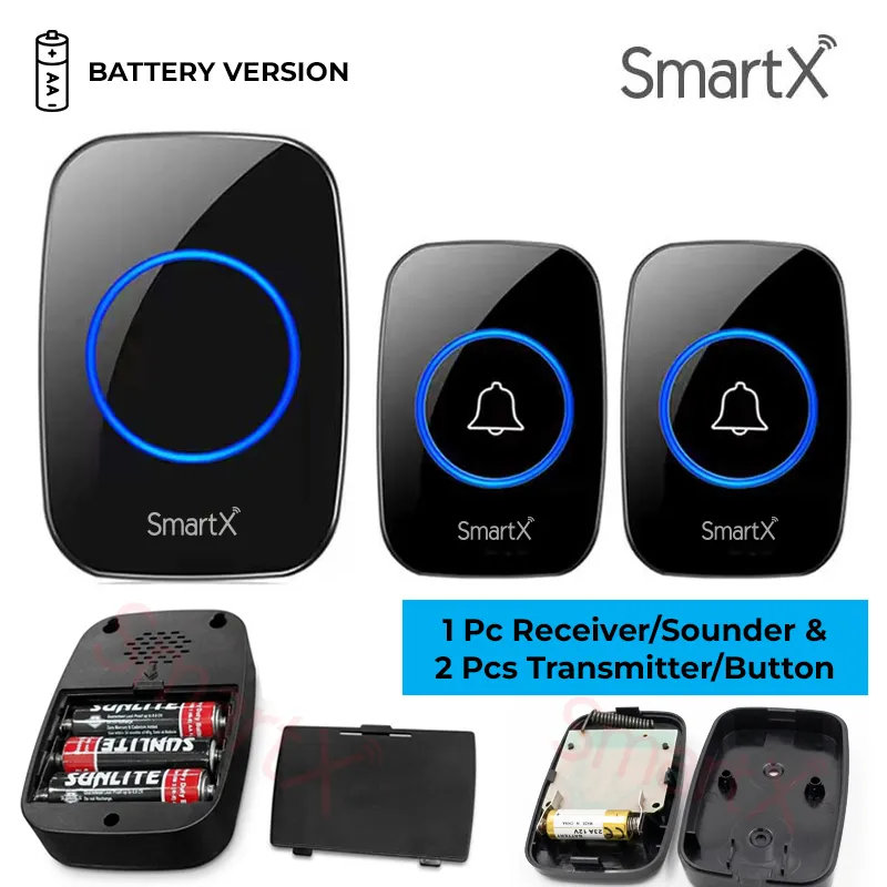 SmartX Wireless Calling Bell / Doorbell 300M Long Range (Open Area) – 1 Receiver 2 Buttons Package