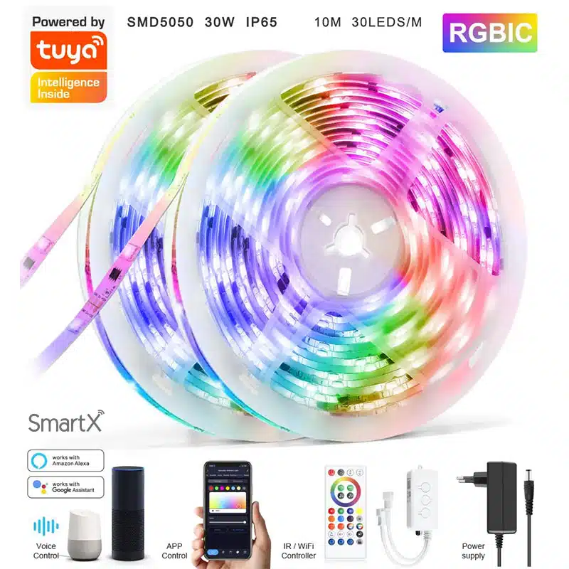 Tuya Smart WiFi RGBIC LED Strip Light 10M with Music Sync Mode & Voice Command Control (Google, Alexa)